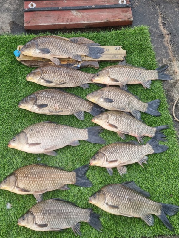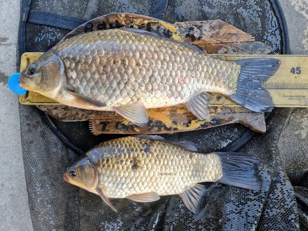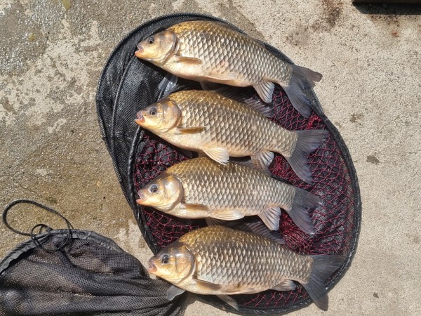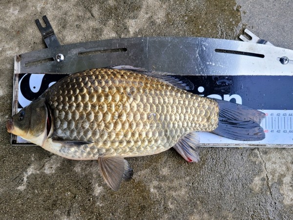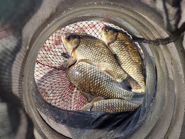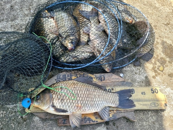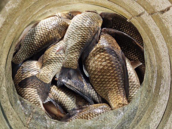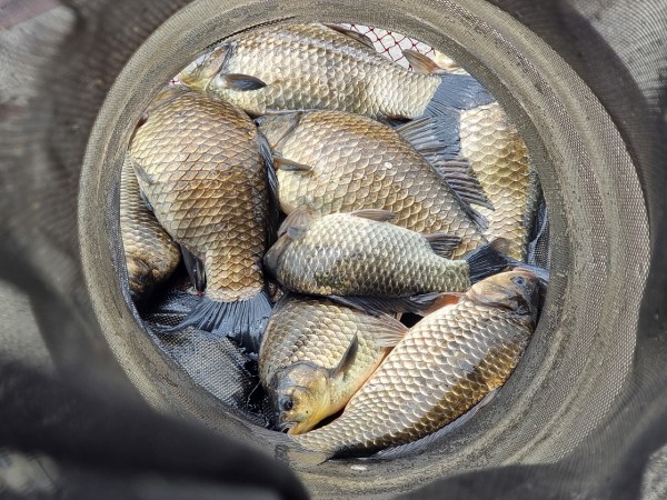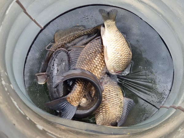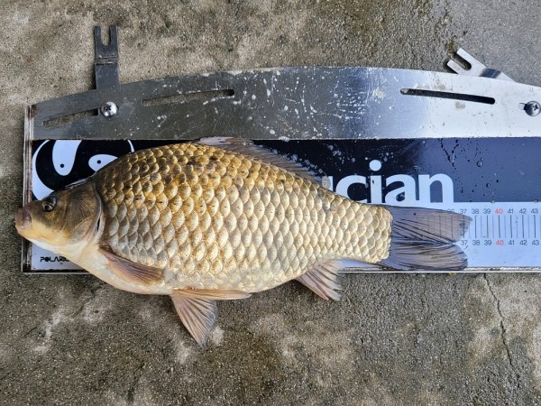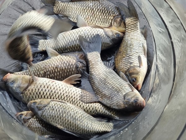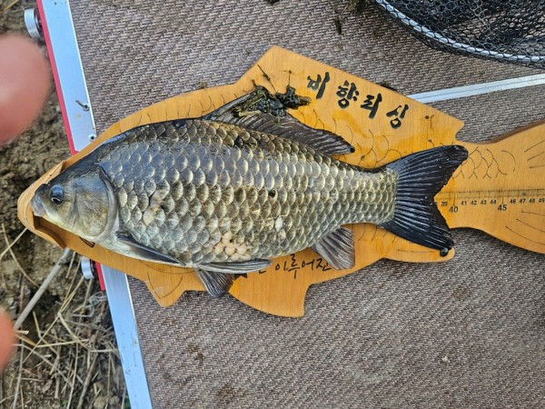 반가운 붕어 손님이 밖으로 다시 나와 얼굴을 보여주어