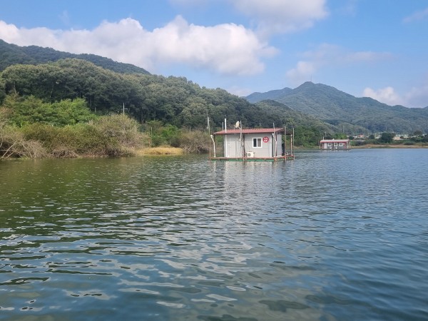 현재 좌대 위치는 수심 1m권에서 2m중반권에